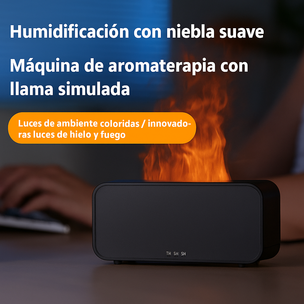 El difusor con efecto llama transforma cualquier espacio en un refugio de confort y elegancia.